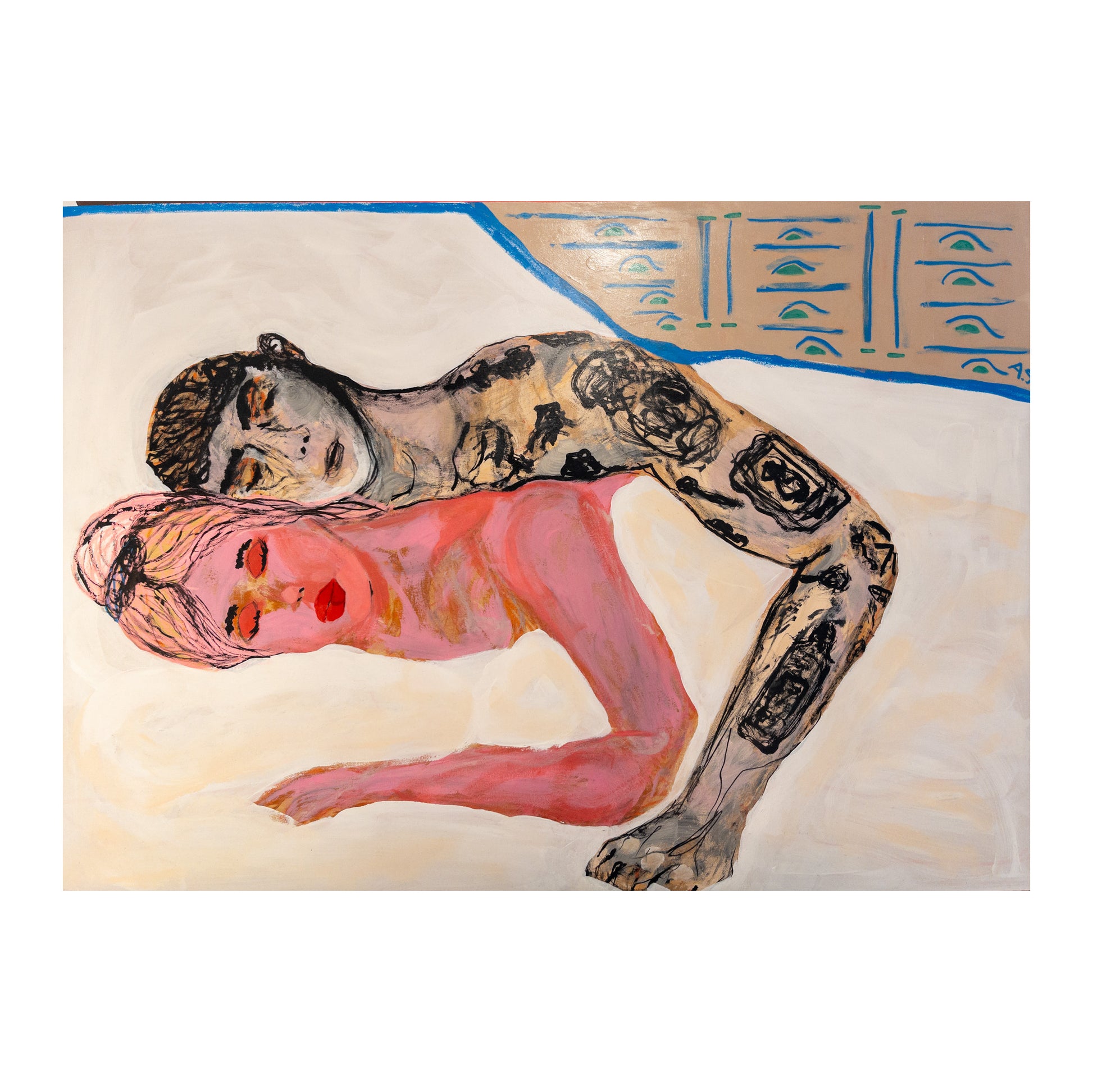 Ready to hang with a wooden "box-frame" on the back, giving it a floating look.