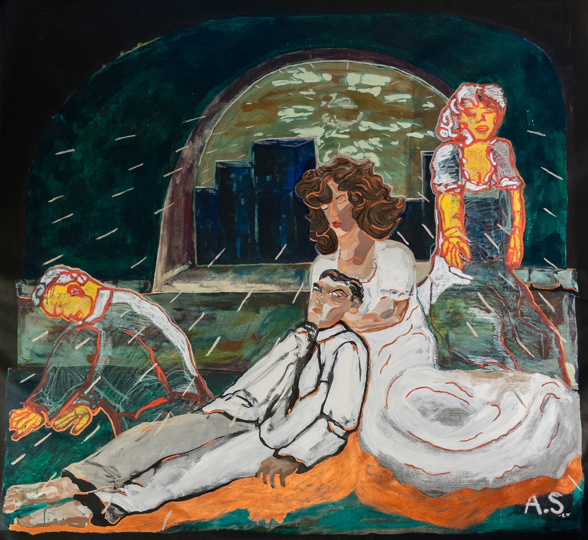 Ink, acrylics, solid marker, sandpaper